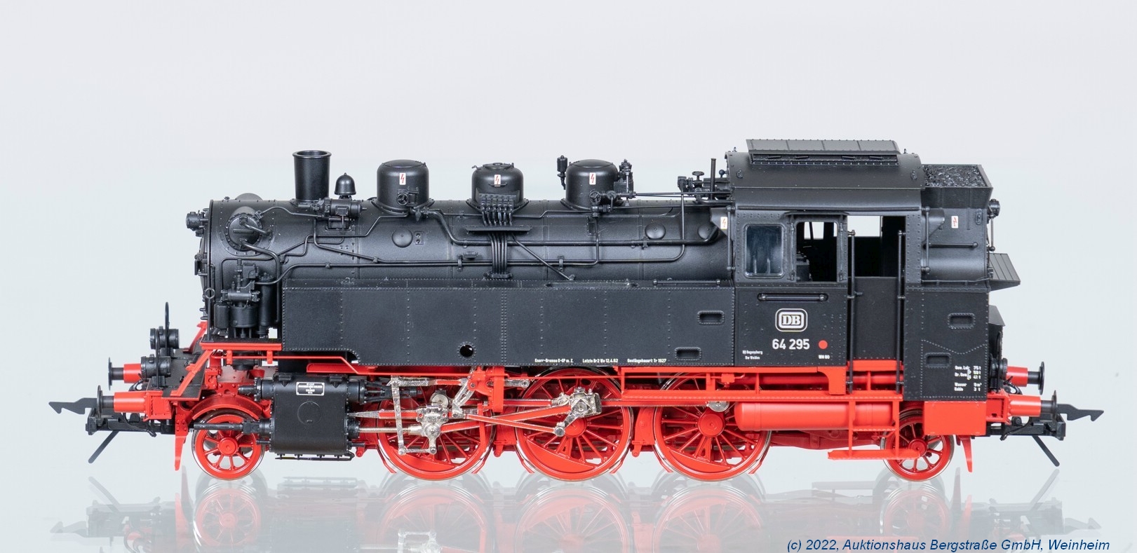 1 Lenz Tenderlokomotive 40230, Baureihe: 64, Deutsche Bundesbahn, Epoche III, Betriebsnummer: 64.295, Achsfolge: 1'C'1, schwarz/rot, genietete Wasserkästen, neuwertig, Originalkarton mit Anleitung! |