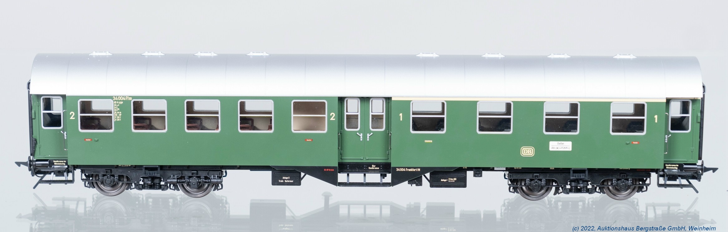 1 Lenz Umbauwagen 41210, 4-achs., Deutsche Bundesbahn, Epoche III, 1./2.Klasse, Wagennummer: 34.004 Ffm, Minden-Deutz Drehgestelle, grün, Dach: silber, automatische Kupplung, neuwertig, Originalkarton! |