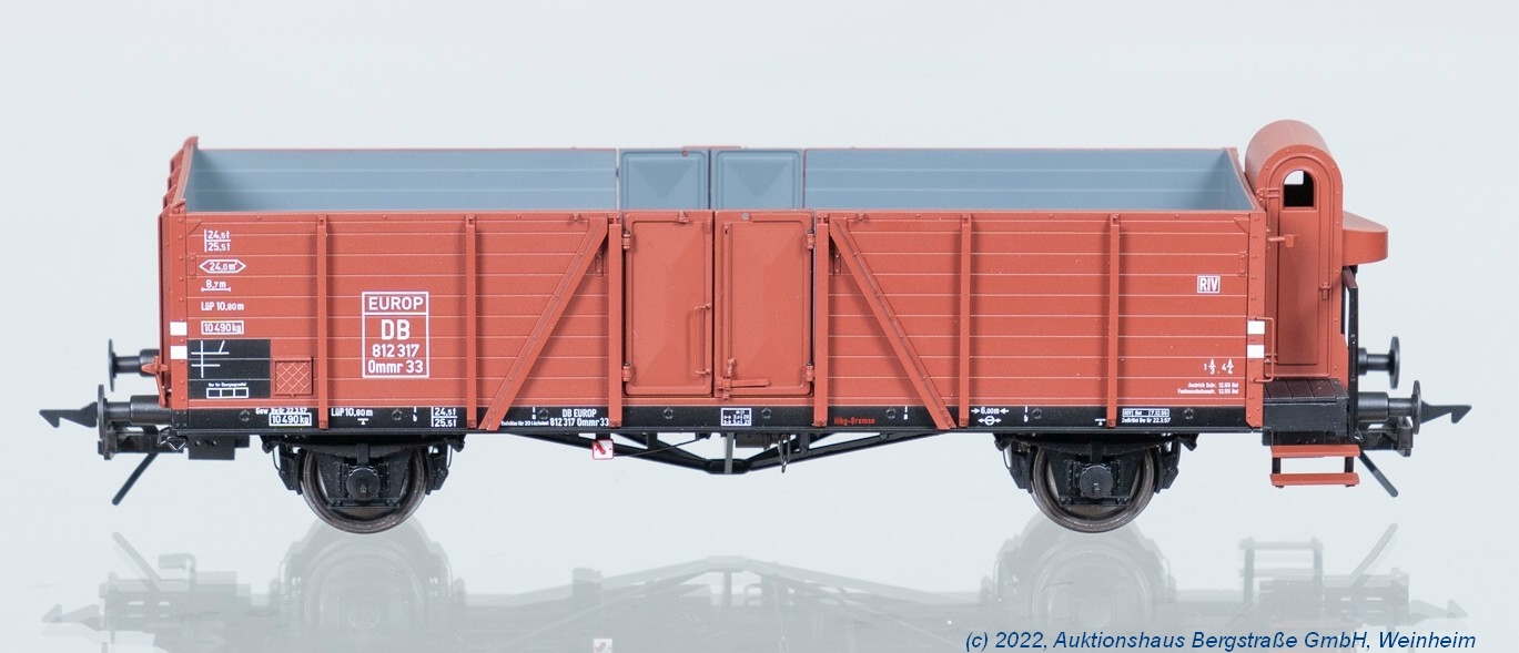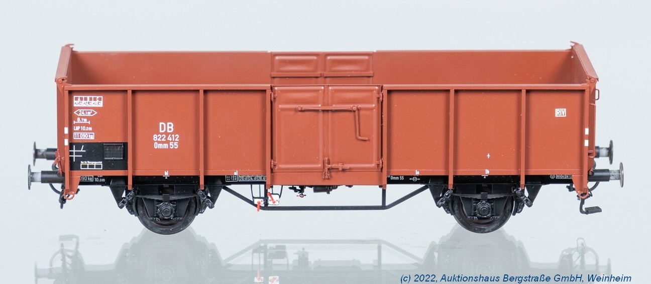 1 Kleinserien Messingmodell Spur 0: Hochbordwagen, 2-achs., Deutsche Bundesbahn, Epoche III, Wagennummer: 822.412, Bauart: Omm55, braun, Vorbildkupplungen, neuwertiger Zustand, Originalkarton! |