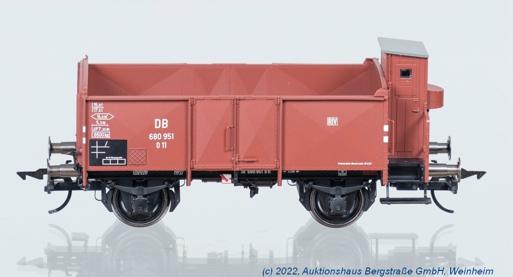 1 Schnellenkamp Spur 0: offener 'Stahl'-Wagen S 43120-1, mit Bremserhaus, Deutsche Bundesbahn, Epoche III, Wagennummer: 680.951, Bauart: O 11, braun, automatische Kupplungen, neuwertig, Originalkarton! |