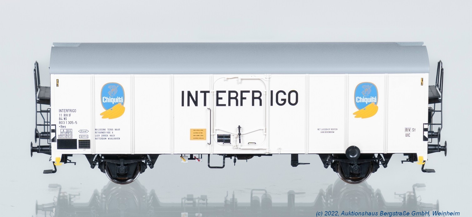 1 Brawa Spur 0 Privat-Kühlwagen 37207, 2-achs., Nederlands Spoorwegen, Epoche IV, Wagennummer: 803.1.305-5, Typ: UIC Standard 1, weiß, Aufschrift: 'Chiquita - INTERFRIGO - Chiquita', neuwertig, Originalkarton! |